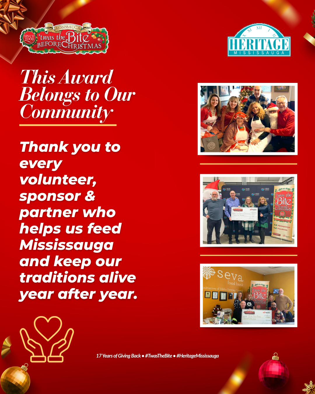 Founded in 2009, 'Twas The Bite Before Christmas comes together each year with Mississauga communities to make a difference because fighting hunger is our biggest priority, feeding hope is what we give to those in need and empowering people in need is the legacy we hope to leave behind.